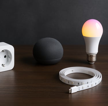 Permite controlar luces convencionales desde el móvil o por voz sin sustituir bombillas ni cambiar la instalación visible.